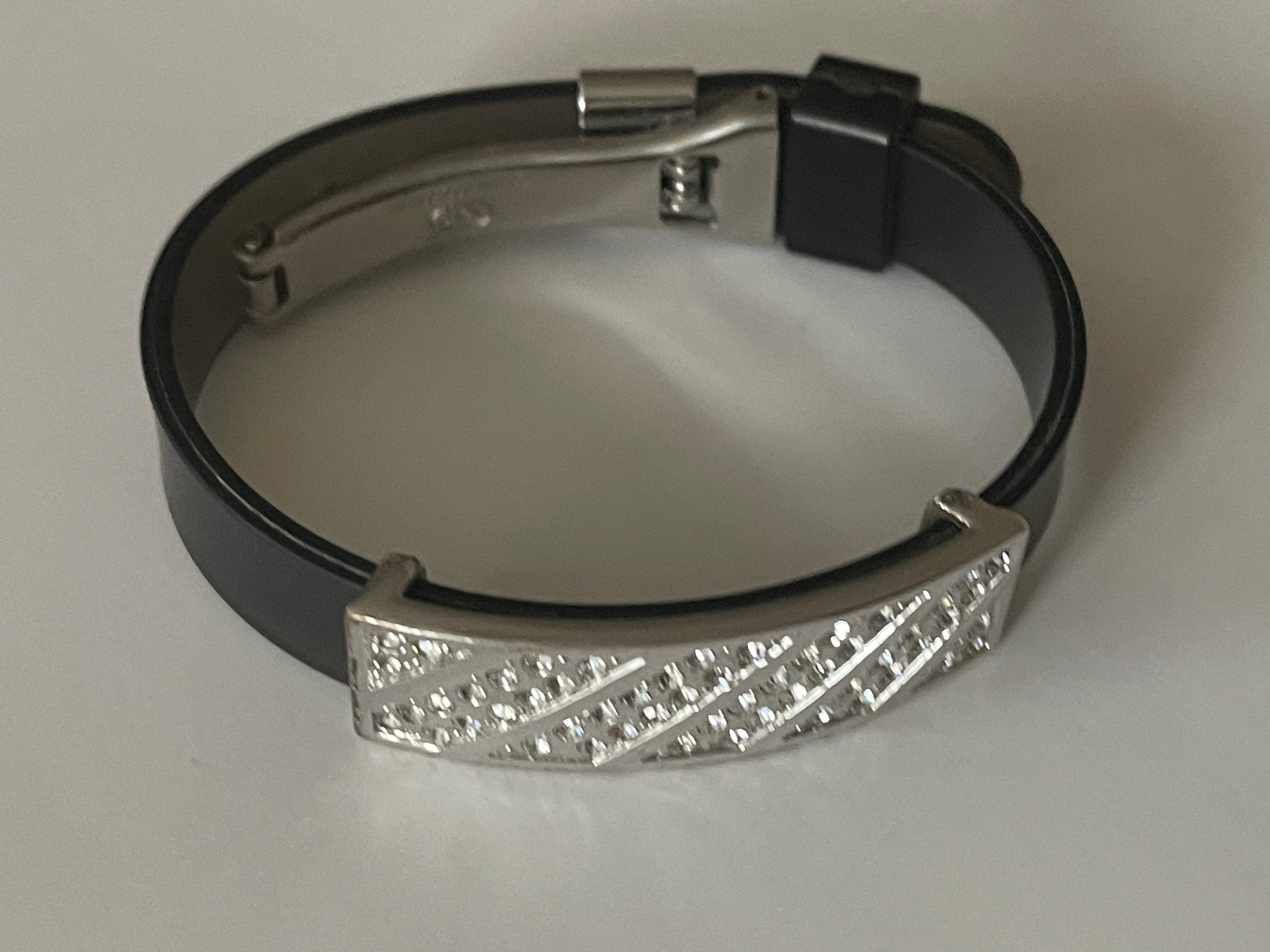 Step into the bold spirit of the ’90s with this rare piece from the Wear Me Out Collection. Featuring a transparent rubber band that flexes with comfort and style, this bracelet is accented with gleaming rhodium-plated details and sparkling zircon stones that catch the light with every movement. The adjustable design ensures a perfect fit for any wrist, making it both wearable and collectible. A true statement of retro-modern elegance.